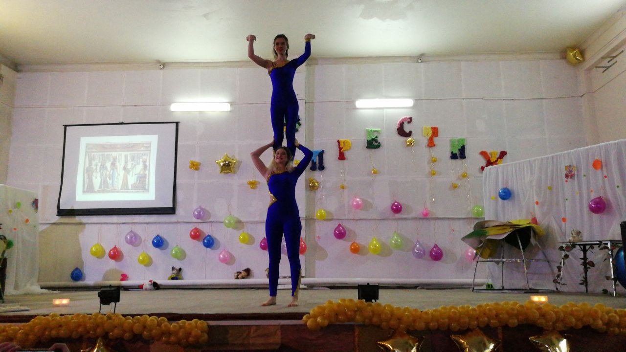 Ребята показывали разноплановые интересные номера: гимнастические этюды, клоунаду, эквилибр, игра с хула хупами, шари вари, жонглирование, баланс, пластический этюд, акробатические номера!